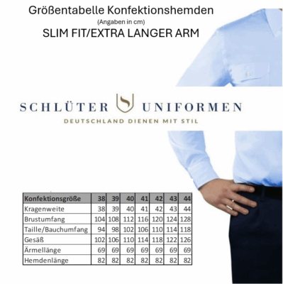 Maßtabelle Konfektion_Extra langer Arm